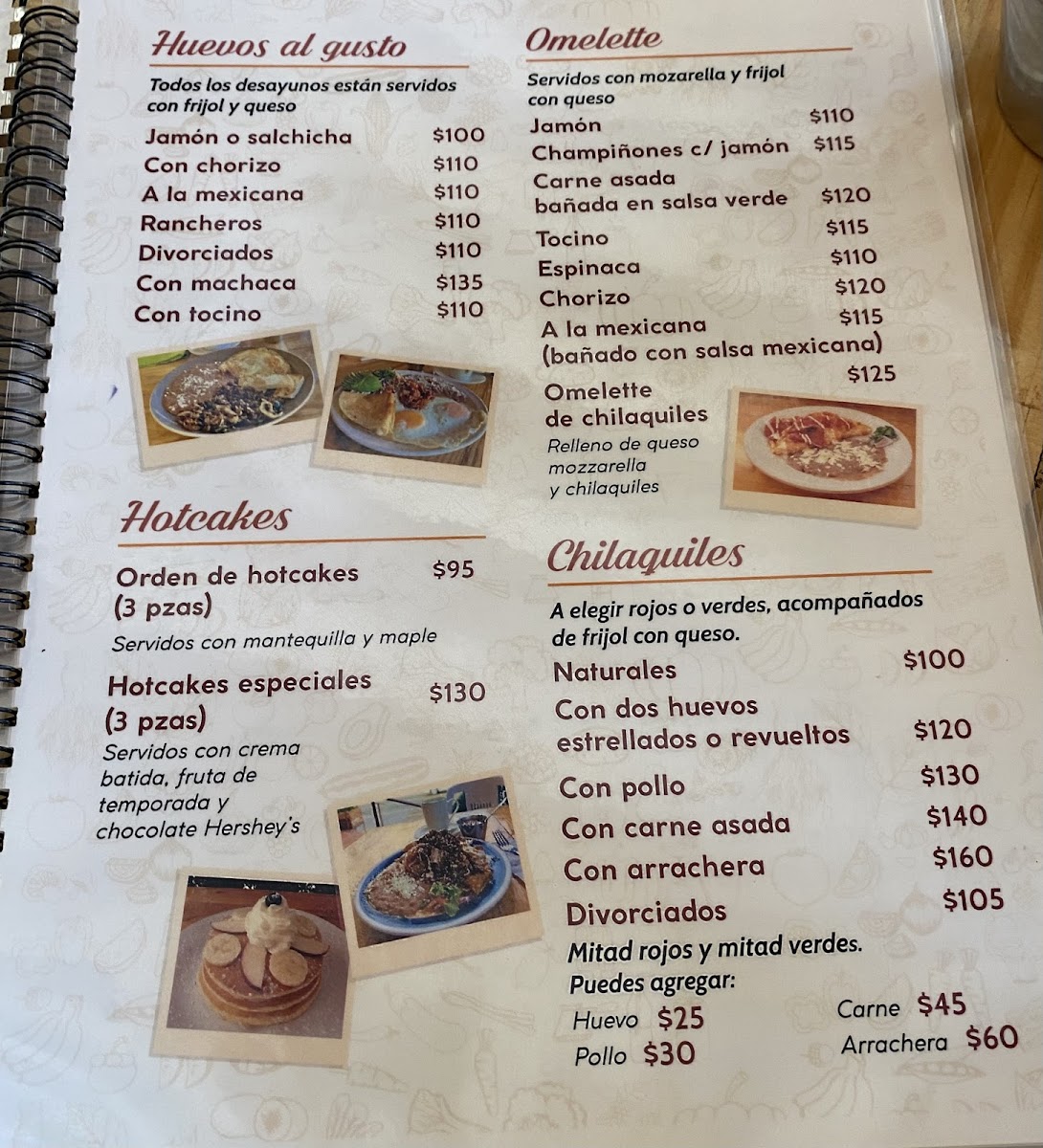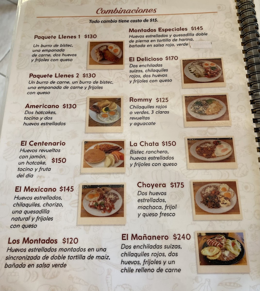 2 Huevos con preparacion a elegir, 1 quesadilla de maiz, chilaquiles, frijoles y queso de la casa.